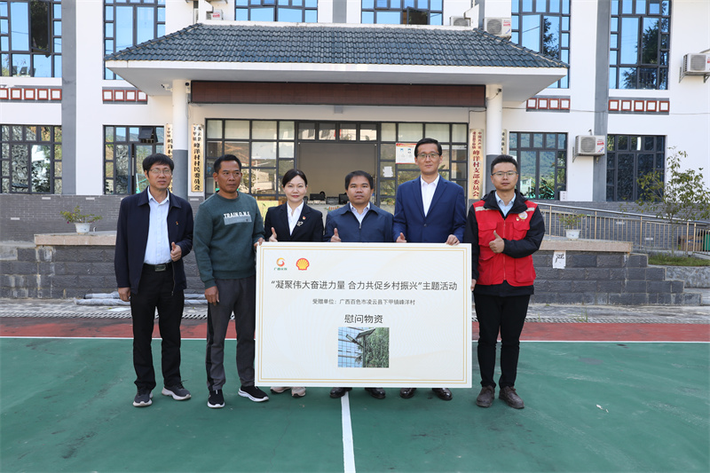 此次活动,由机械院、商贸公司牵线搭桥,携手壳牌(中国)公司为峰洋村进行物资捐赠。机械院下属企业柳州格瑞米公司组织5家爱心企业捐赠了价值2.8万元的基础设施建设物资,壳牌公司、商贸公司向峰洋村捐赠了8盏太阳能路灯,帮助峰洋村解决基础设施难题。
