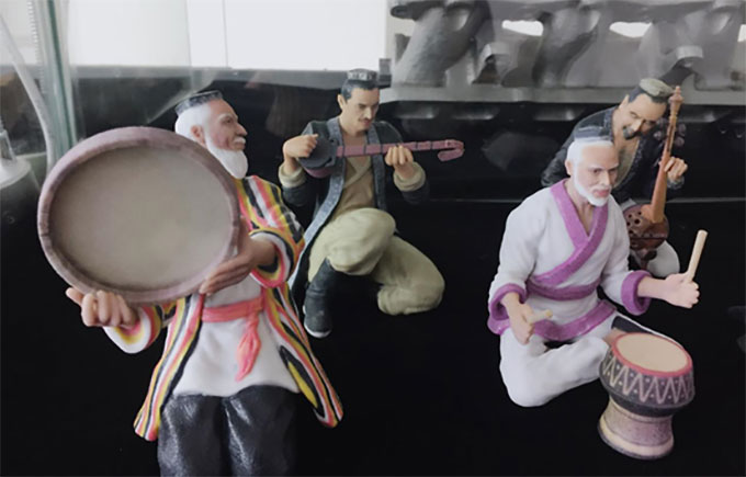 全彩 3DP(Three Dimensional Printing)三维打印粘结成型技术是将与胶水混合的三原色彩色墨水通过打印头打印在托盘铺设的复合砂岩材料上。完成一层打印后,托盘工作台下降一个层高,再铺设一层新的材料,不断打印,不断粘结而成。