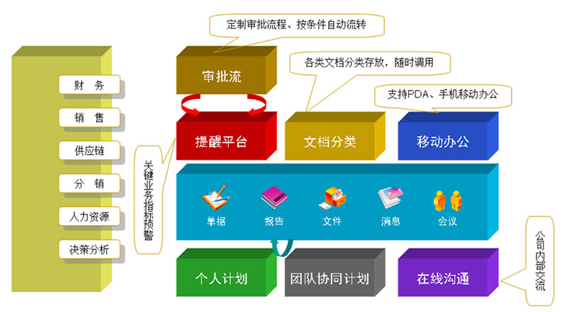 办公自动化系统适用于任何企事业单位、公司、工厂等各类机构的行政办公需求,系统全面引入协同思想、工作流技术,电子签章等技术,并针对手机/平板开发了专用APP,为用户实现一个集内部通讯、信息发布、协同工作、知识管理、辅助办公为一体的高效协同办公系统。主要功能包括外勤管理、公文管理、申请管理、网络通讯、车辆管理、办公用品管理、办公设备管理、日程管理、会议管理、工作周报、公用信息、网络硬盘等。
